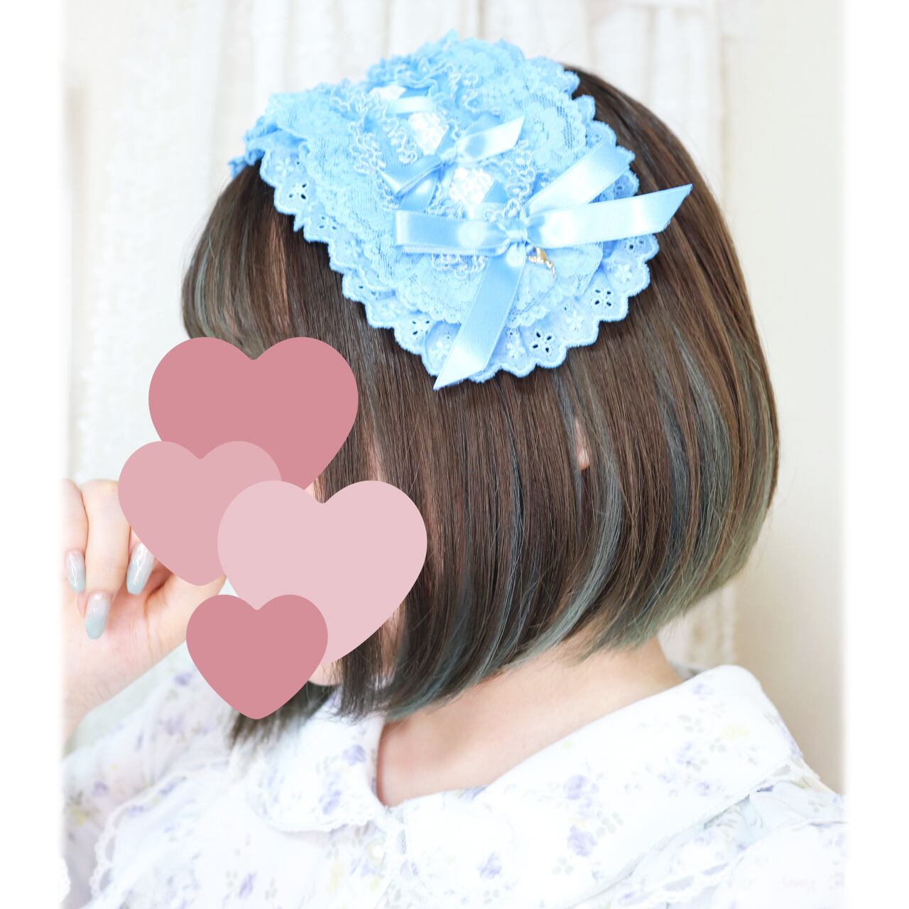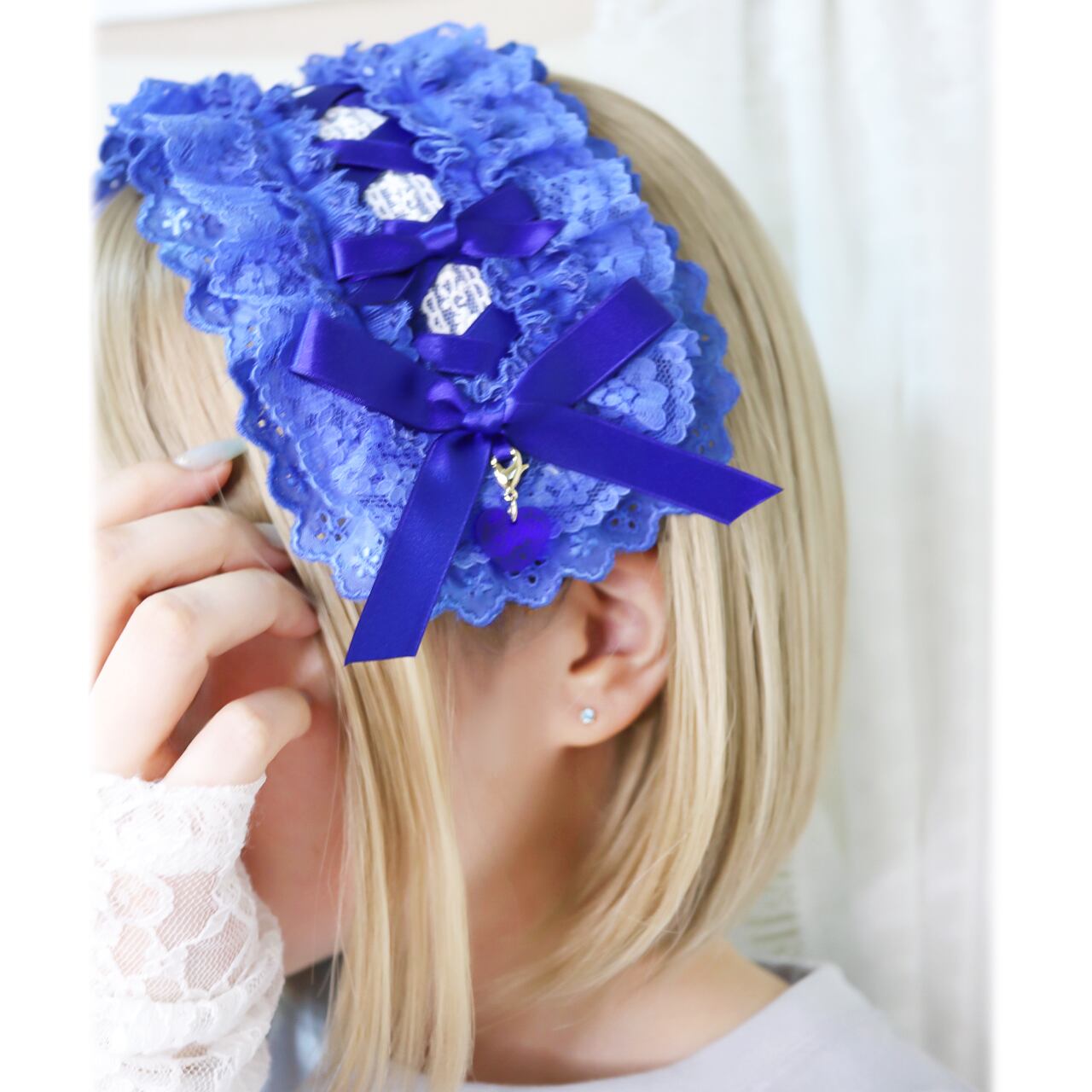 すべて手作業での作製につき個体差があります。レースは染料を用いて染色しておりますので個体差や若干の色むらなどがございます。