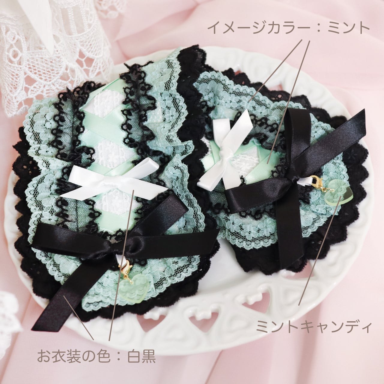 すべて手作業での作製につき個体差があります。レースは染料を用いて染色しておりますので個体差や若干の色むらなどがございます。