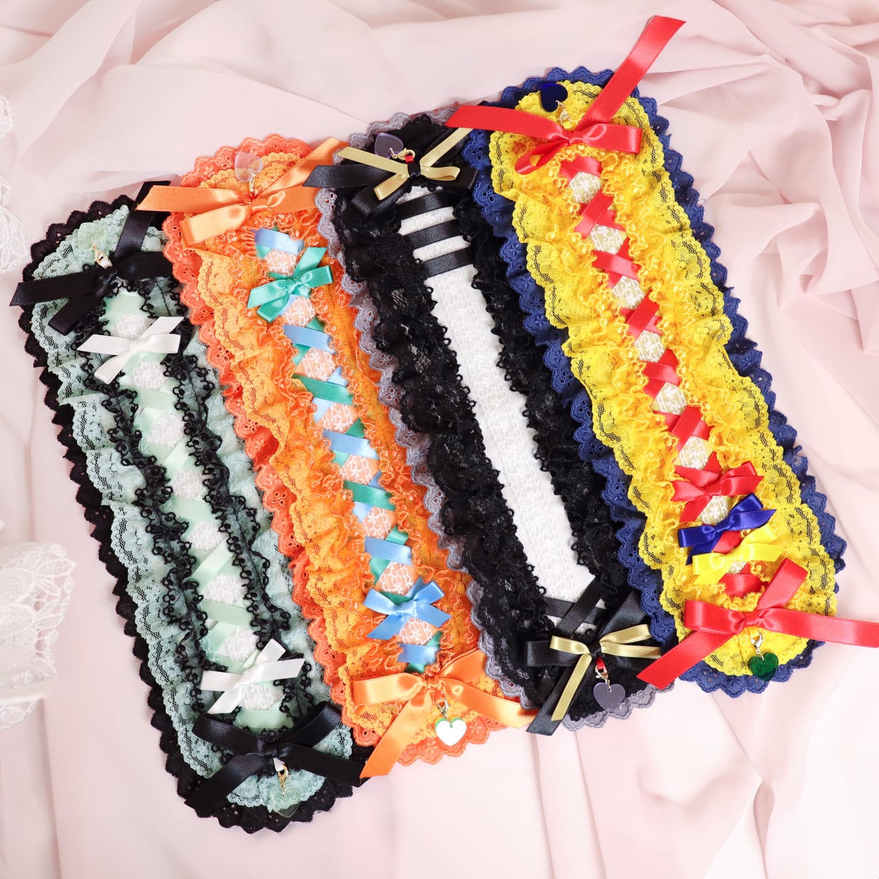 たっぷりのフリルと多彩なカラーが魅力のヘッドドレスです。
