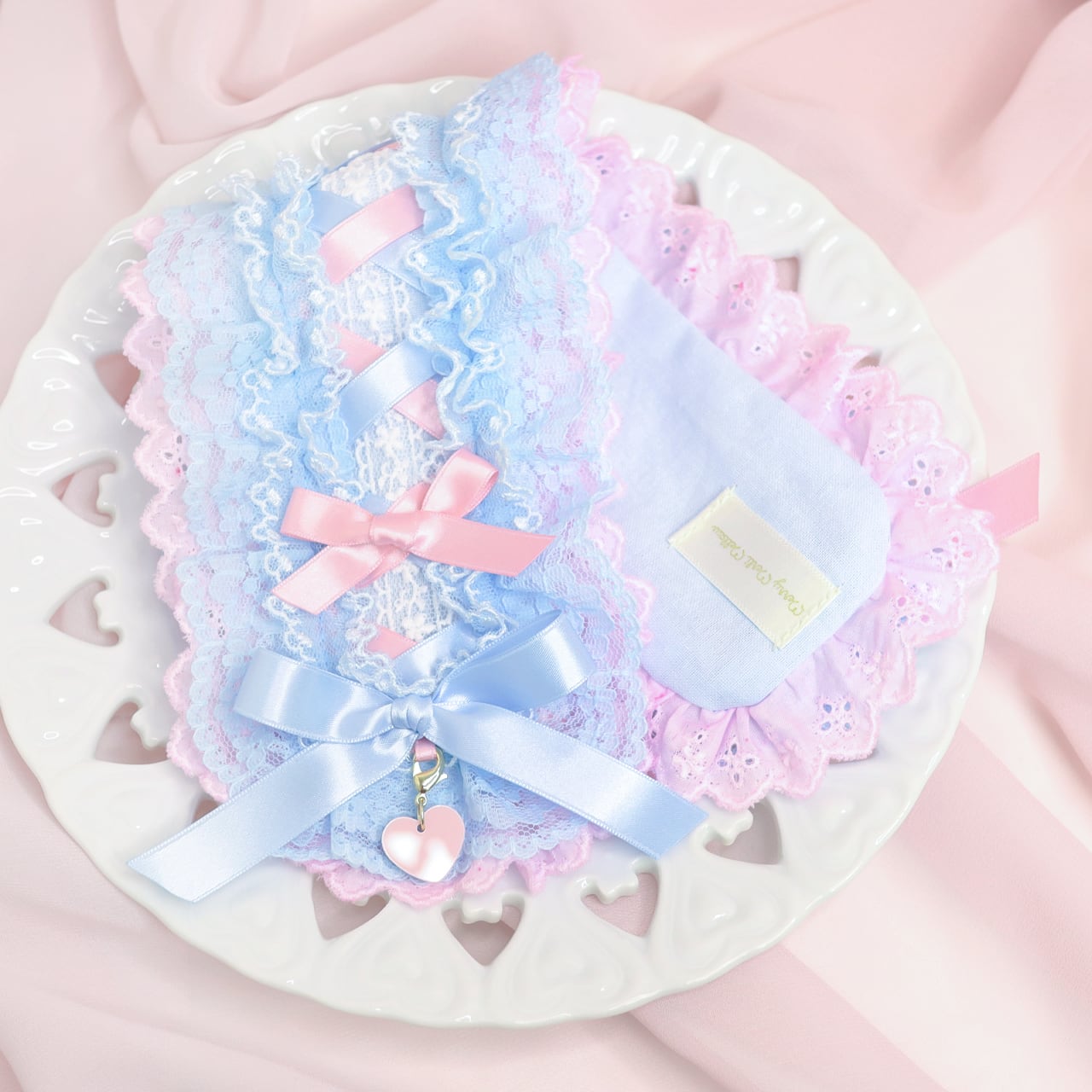 すべて手作業での作製につき個体差があります。レースは染料を用いて染色しておりますので個体差や若干の色むらなどがございます。