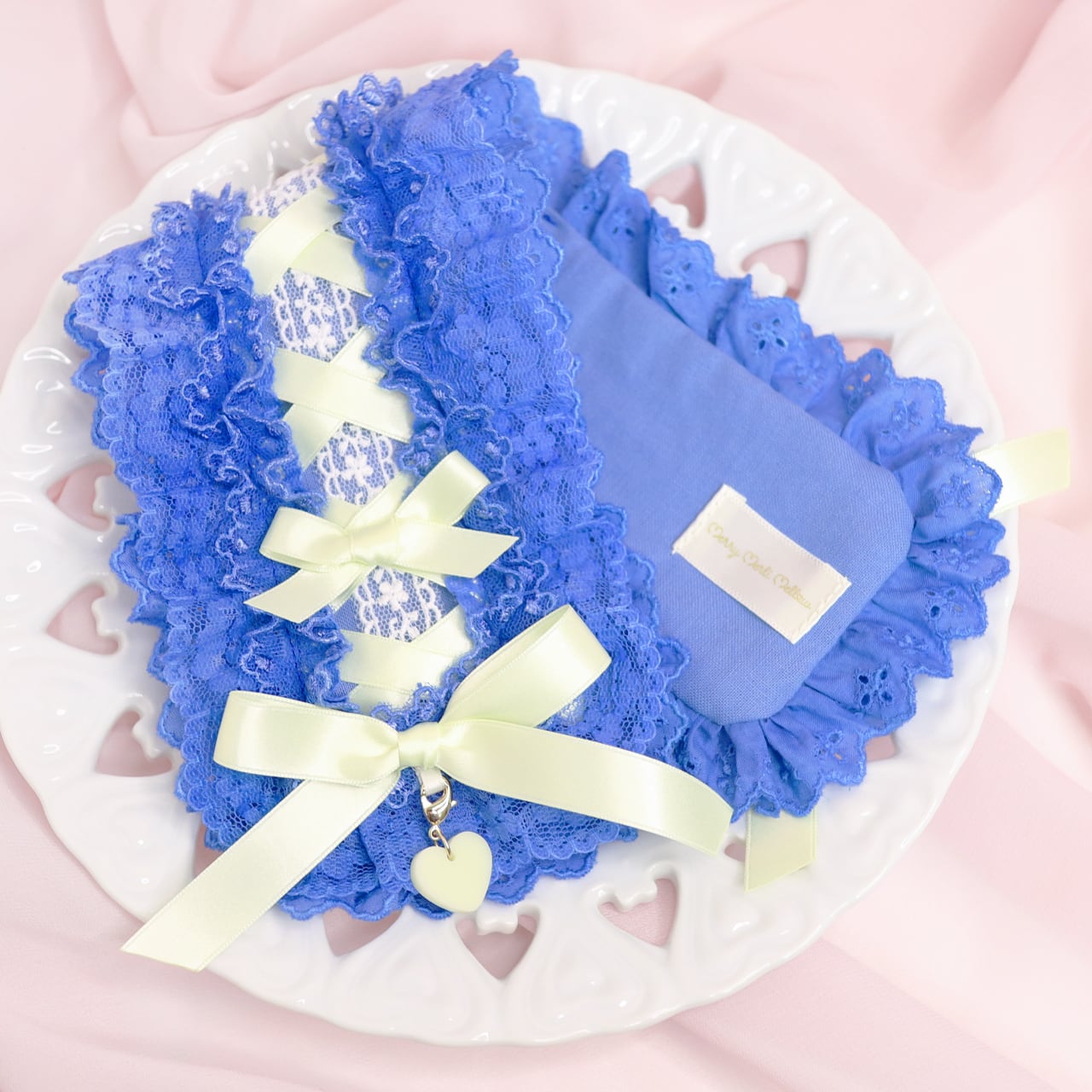 すべて手作業での作製につき個体差があります。レースは染料を用いて染色しておりますので個体差や若干の色むらなどがございます。