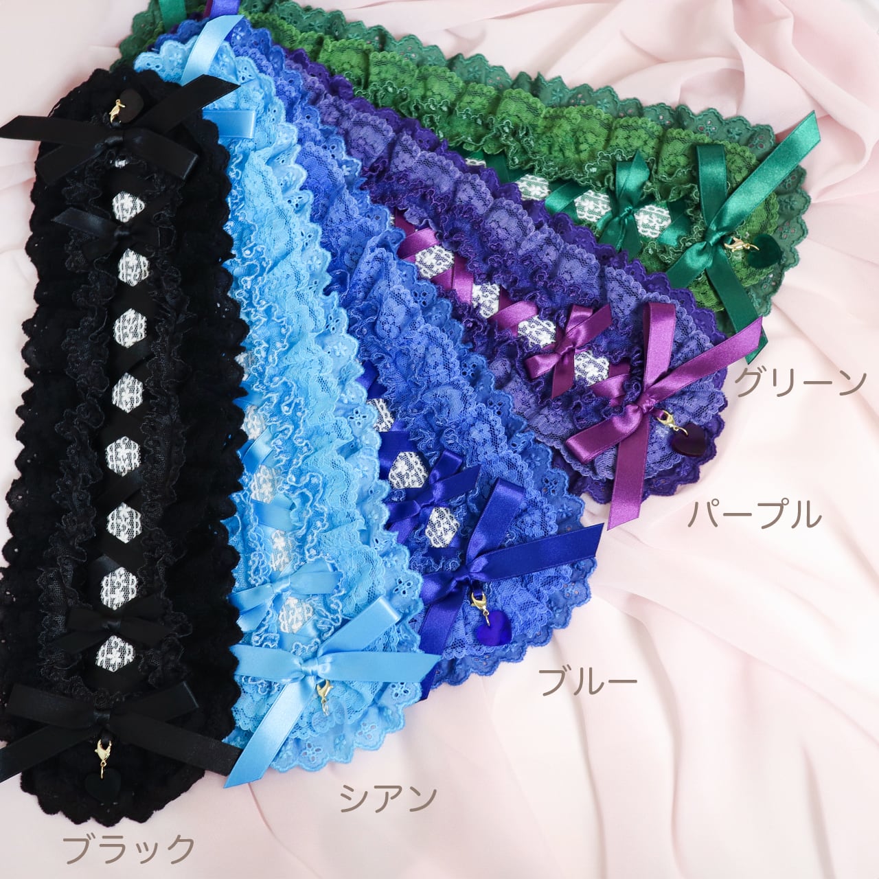 すべて手作業での作製につき個体差があります。レースは染料を用いて染色しておりますので個体差や若干の色むらなどがございます。