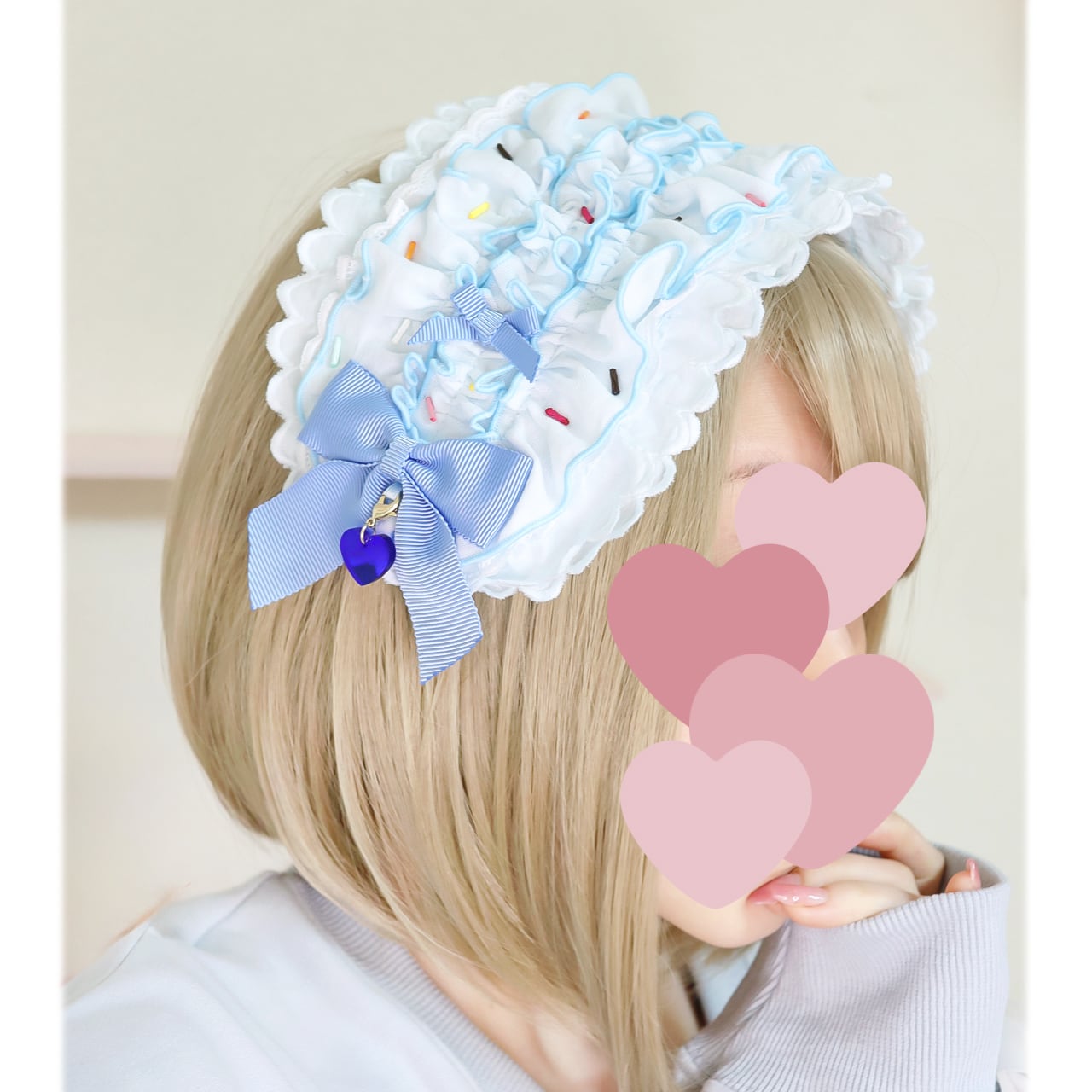 たっぷりのカラースプレーをふりかけたアイスクリームを表現したヘッドドレスです。
