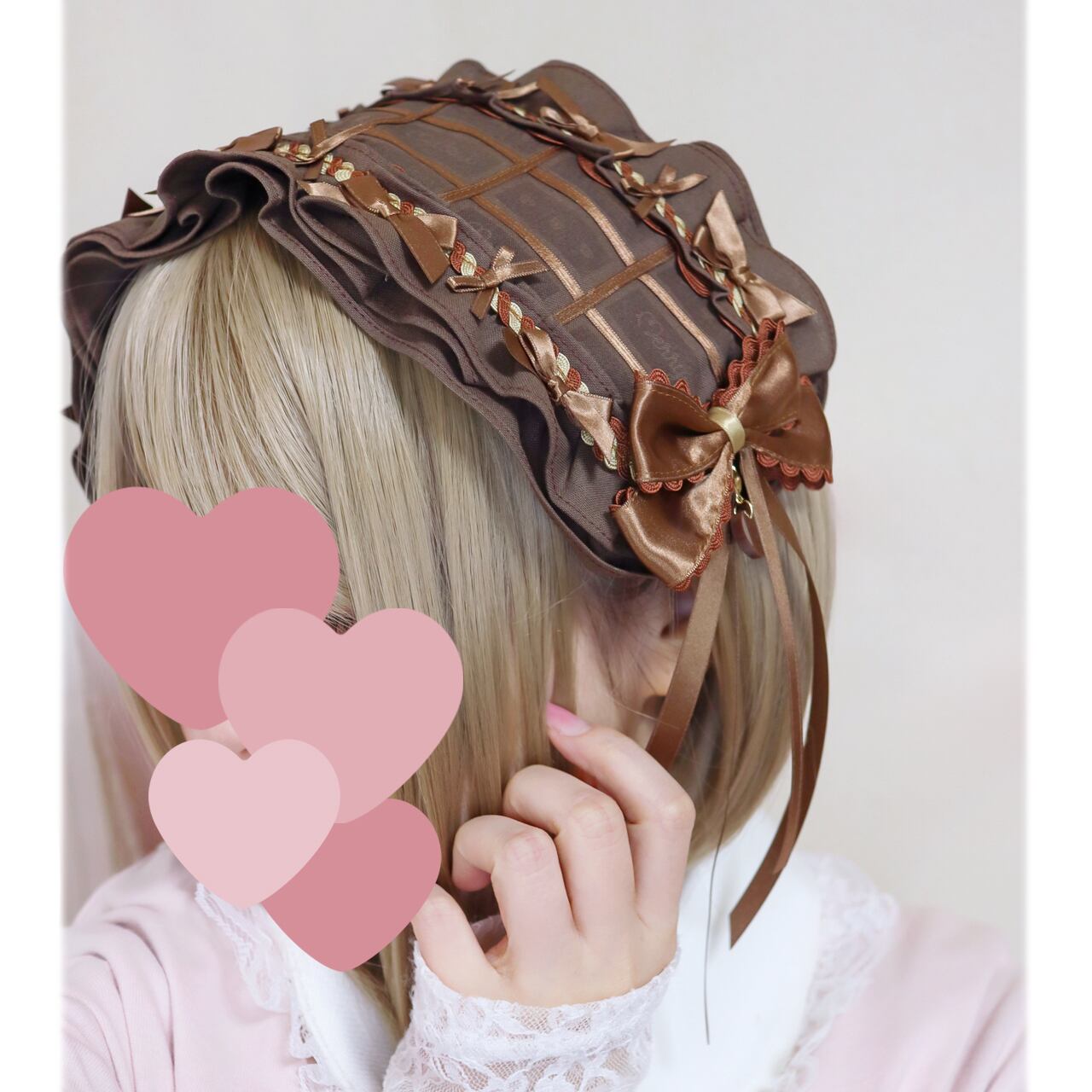 板チョコ風のデザインとたっぷりのリボン♡フリルをとろけるチョコレートに見立てたあまいテイストのヘッドドレスです♡